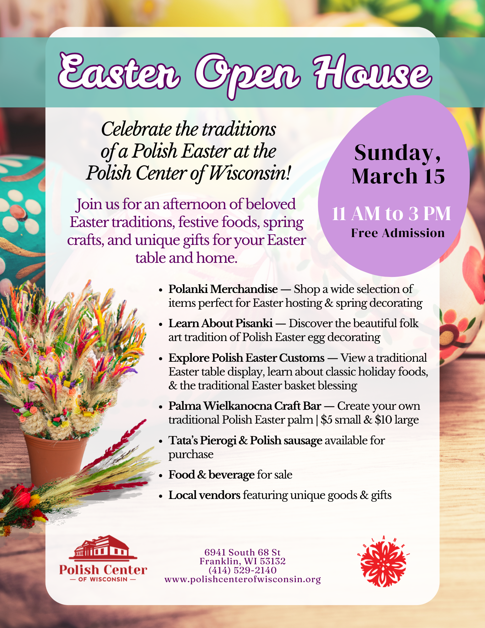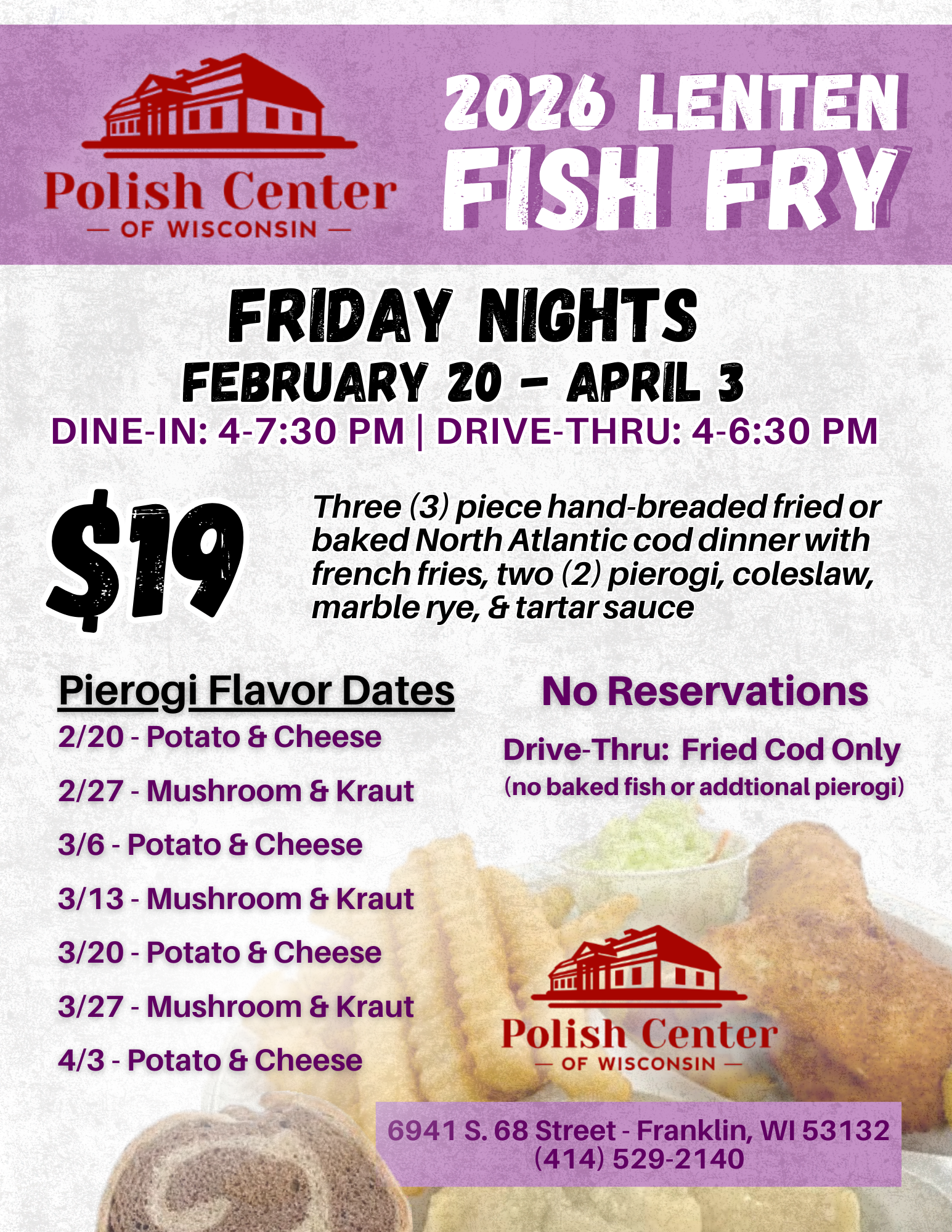 We are proud to sell delicious "take & bake" Tata's Pierogi at the Polish Center of Wisconsin.